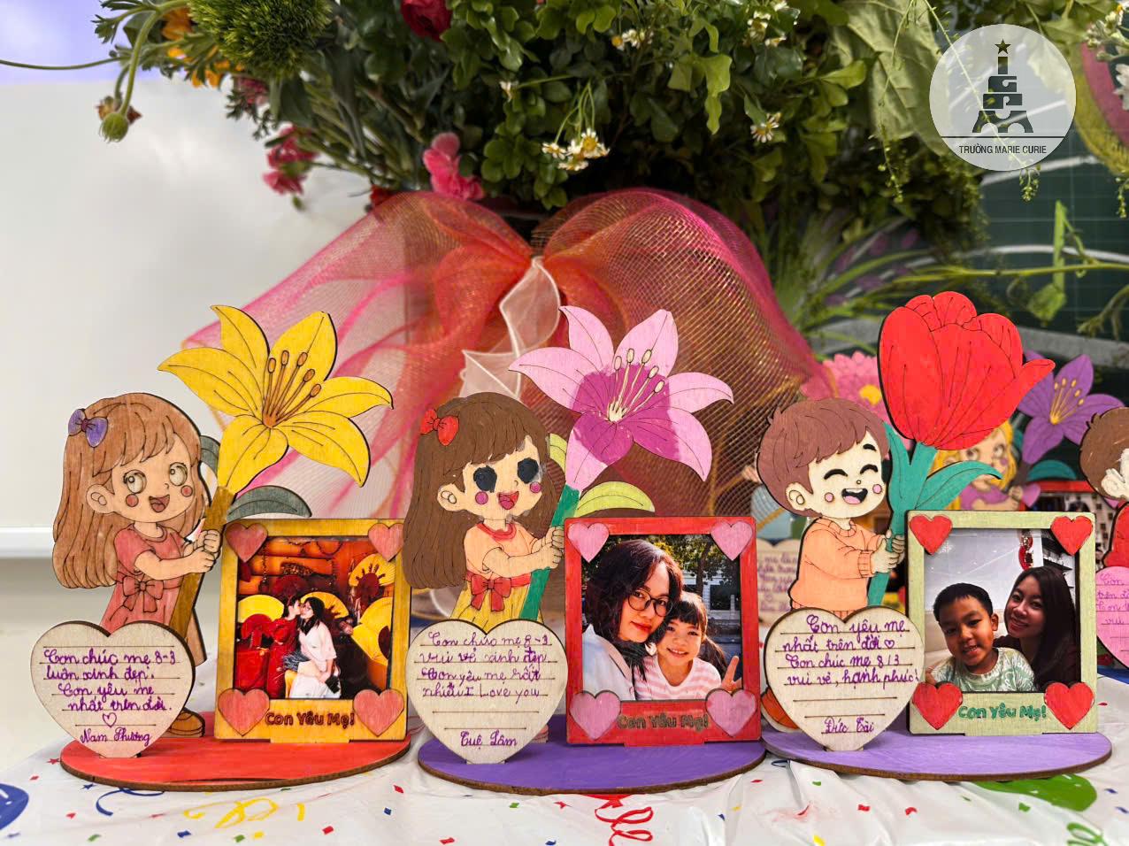 “Các con rất sáng tạo và khéo tay. Sản phẩm nào cũng rực rỡ màu sắc và tràn đầy tình yêu thương dành cho người phụ nữ mà các con thương yêu”, cô Minh Thu, cô Lưu Yến (GV Mỹ thuật) chia sẻ.