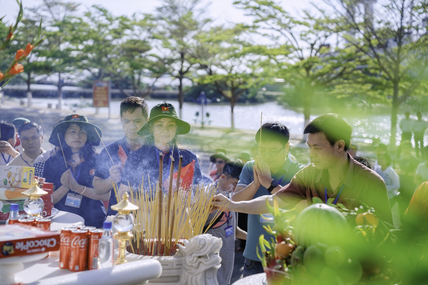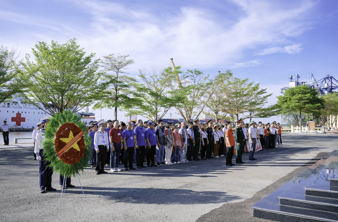 Trước khi rời bến, đoàn công tác tham dự lễ tưởng niệm 132 chiến sĩ đã anh dũng hy sinh trên những chuyến tàu không số huyền thoại - những người con kiên trung của dân tộc đã vượt qua bão giông, lửa đạn và sự phong tỏa gắt gao của kẻ thù.