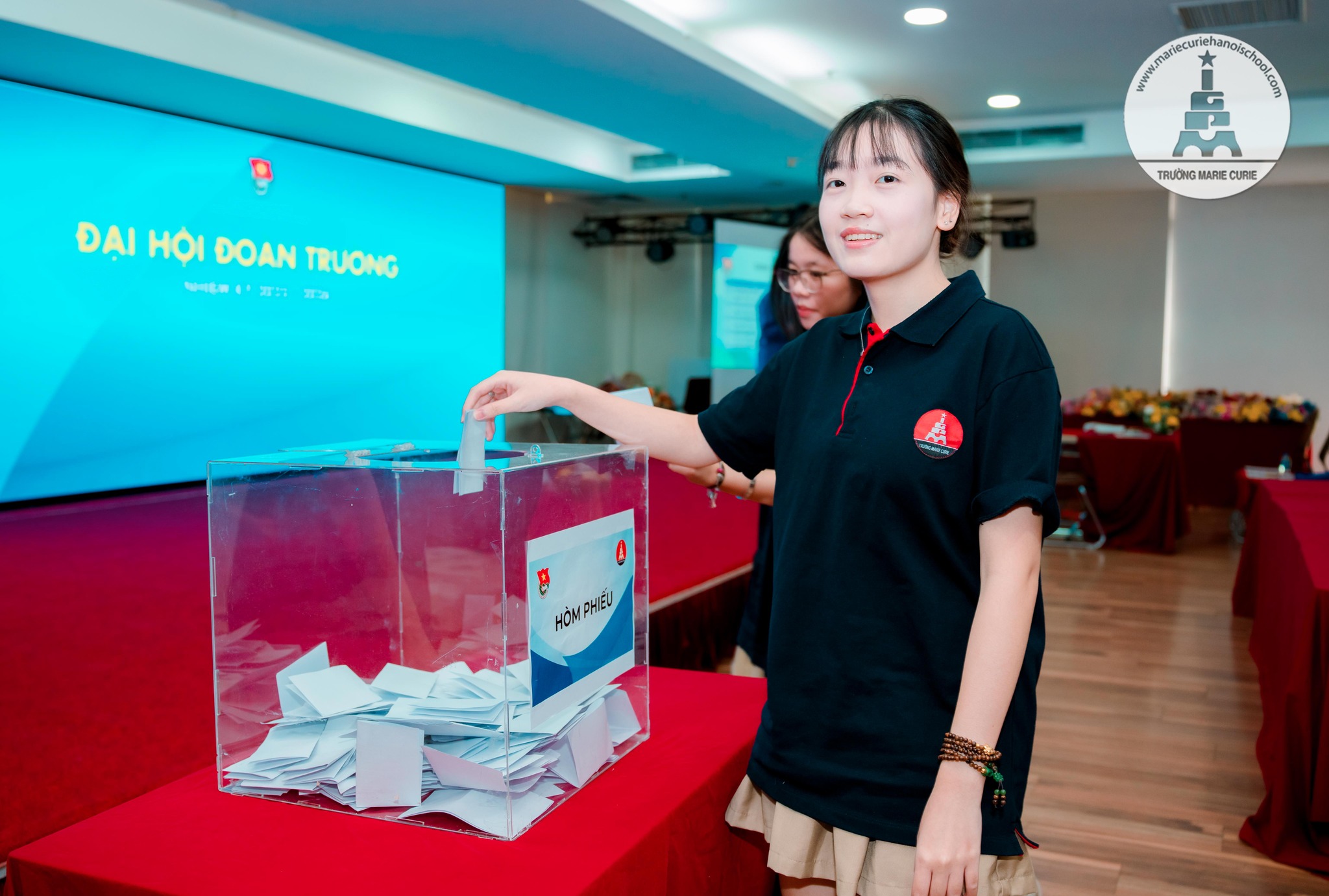 Ngọc Trâm (11E7) chia sẻ niềm tự hào khi được khoác màu áo xanh tình nguyện và đảm nhận vai trò MC của Đại hội. Cô bạn nói: “Để chuẩn bị cho chương trình, mình và các thành viên khác đã trải qua nhiều buổi họp. Chúng mình cùng lên kịch bản, tỉ mỉ đóng dấu sổ Đoàn, tự tay gói từng phần quà… Mỗi việc làm đều chứa đựng sự nhiệt huyết và tinh thần trách nhiệm. Chúng mình mong Đại hội sẽ trở thành một ngày hội thực sự - nơi mỗi Đoàn viên đều cảm nhận được niềm vui, sự gắn kết và có những khoảnh khắc khó quên”.