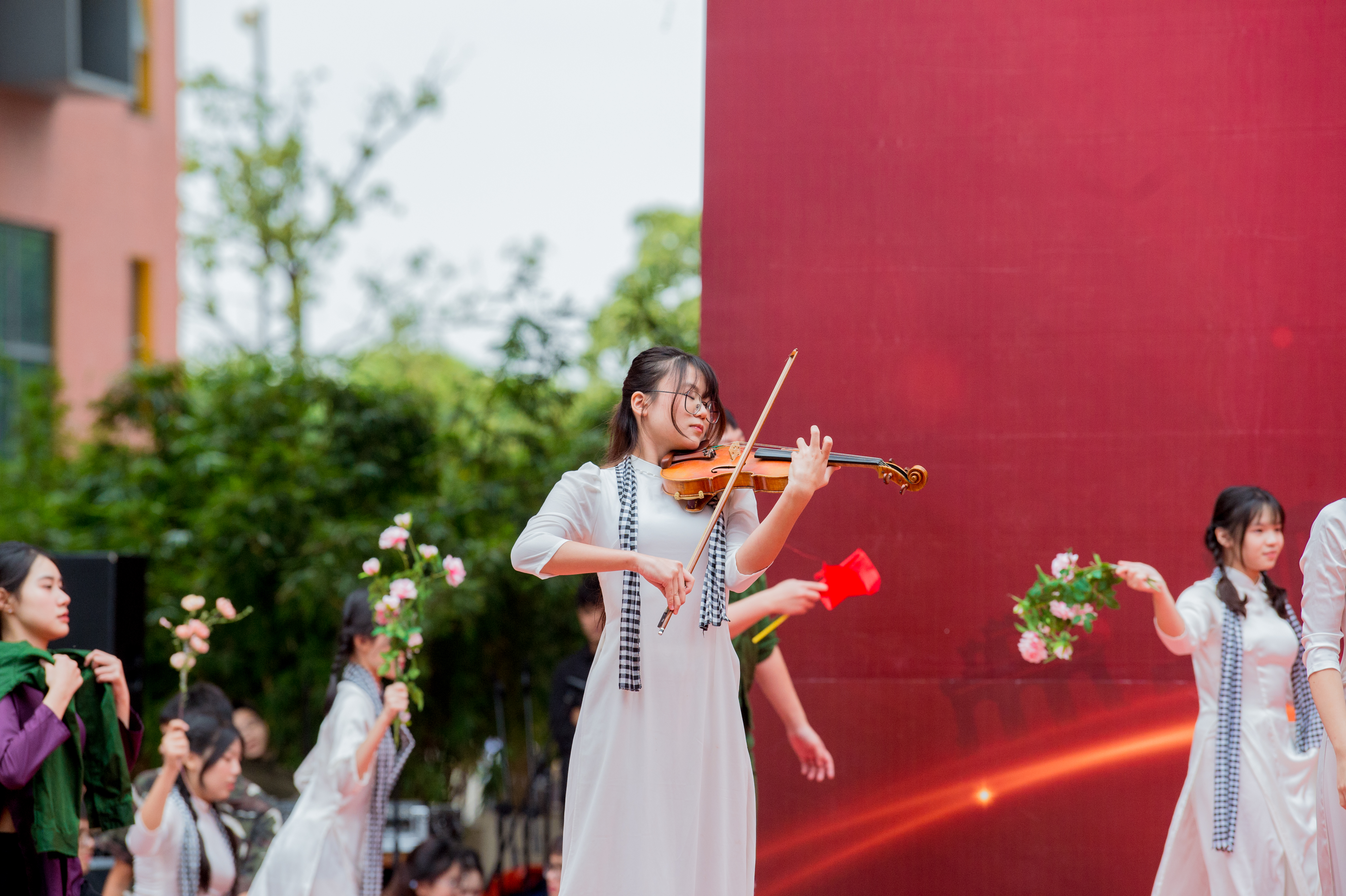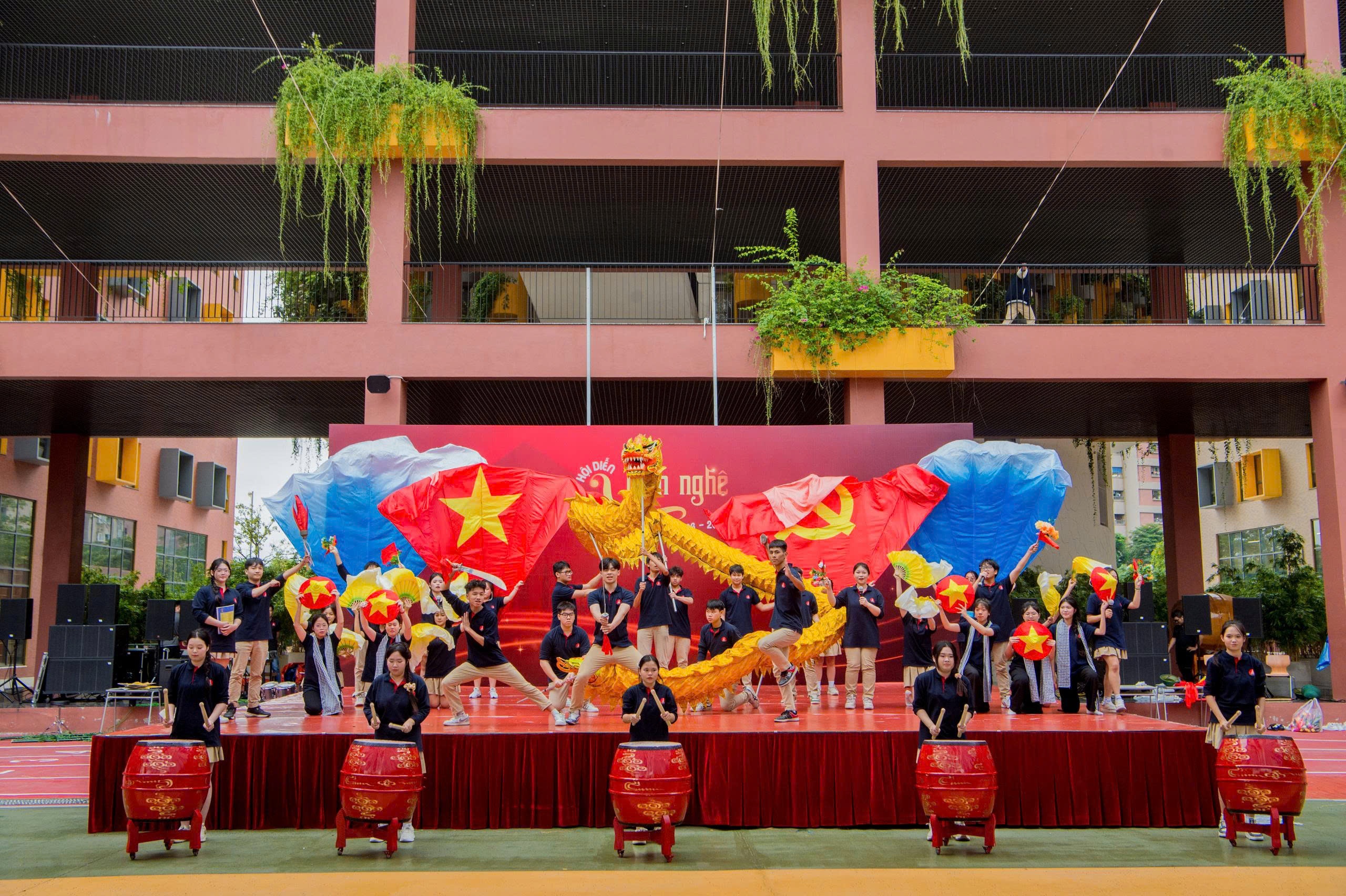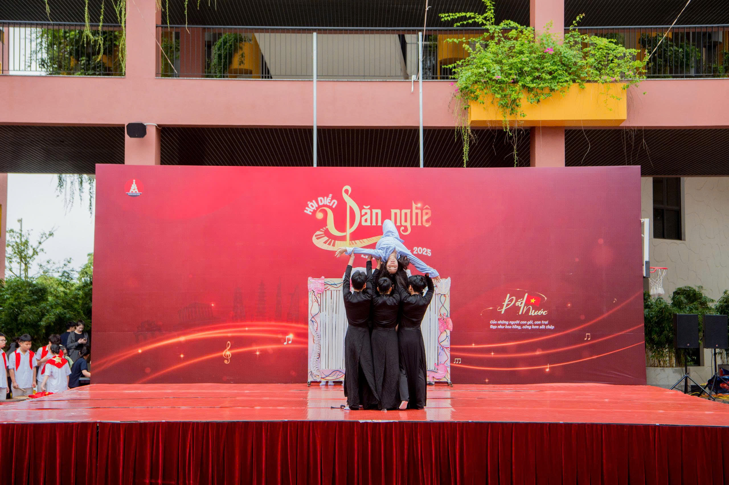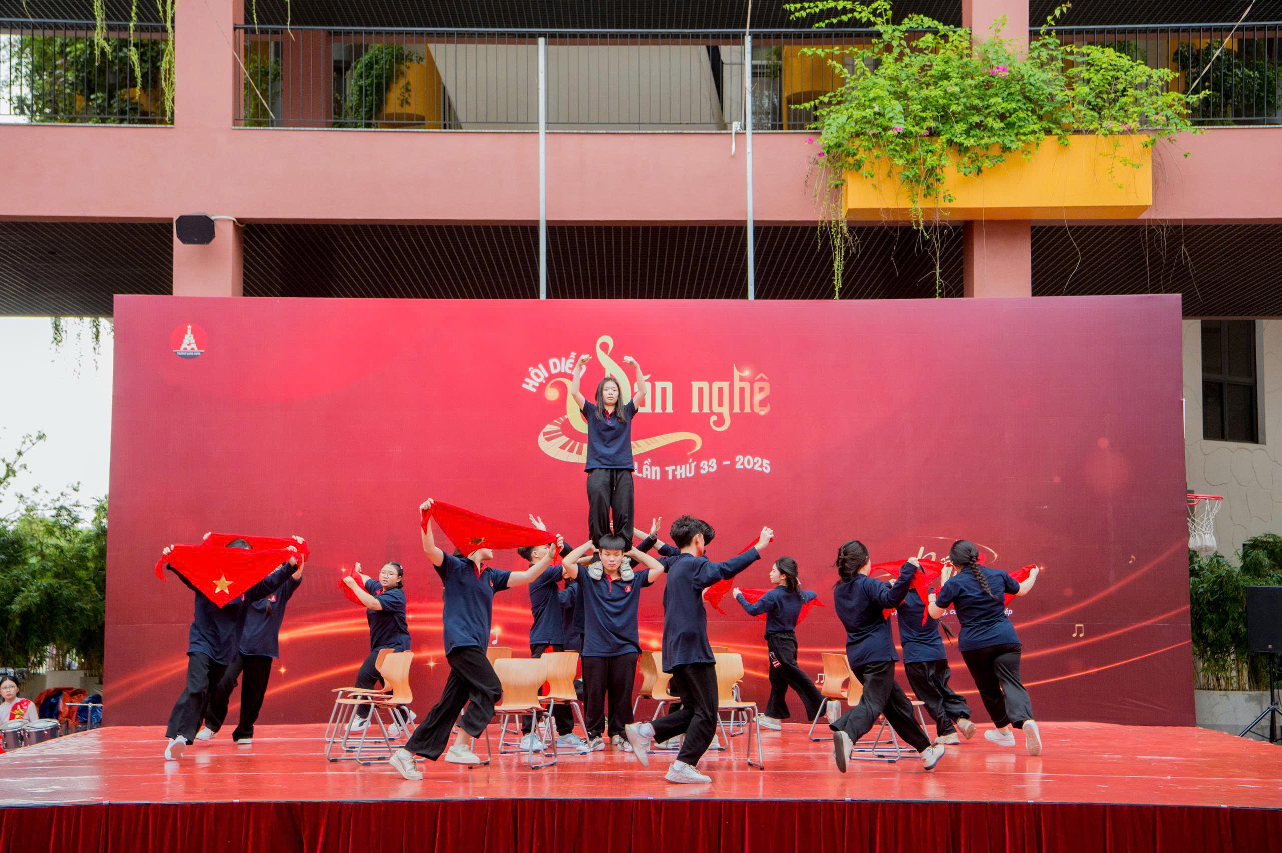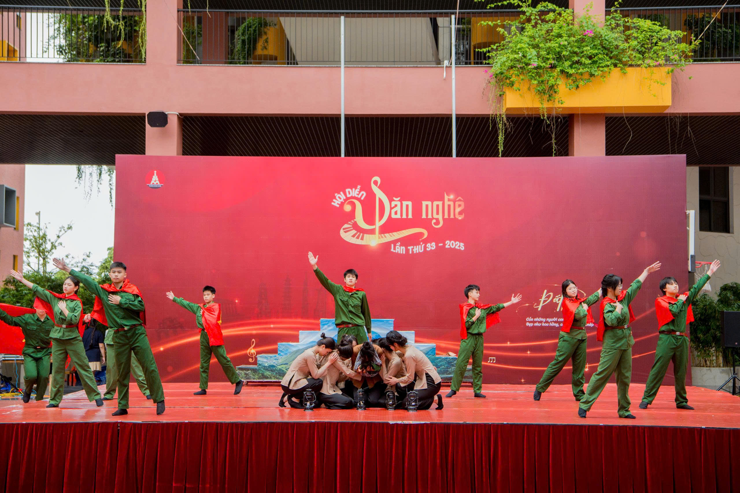 Lê Hiếu, Minh Anh (11B4) tạo ấn tượng với màn diễn xuất rất nhập tâm. 2 bạn nói: “Chúng mình không chỉ mong muốn làm khán giả bất ngờ mà còn muốn khiến mọi người cảm nhận được sự nhiệt huyết của tụi mình khi đứng trên sân khấu. Sau nhiều buổi tập luyện, từng bước nhảy đều mang trong đó quyết tâm và tinh thần đồng đội. Chúng mình đã thật sự “bùng cháy” và gửi gắm được thông điệp của tiết mục đến khán giả: Đất nước được viết nên từ lòng dũng cảm và tuổi trẻ hôm nay có trách nhiệm giữ gìn “ngọn lửa” ấy mãi sáng. “Tử chiến trên không” là cách chúng mình tái hiện một lát cắt lịch sử hào hùng của lịch sử năm 1978 - nơi những người dân Việt Nam kiên cường giữ vững bầu trời Tổ quốc. Qua từng nhịp diễn, chúng mình muốn truyền tới khán giả niềm tự hào, sự biết ơn và tinh thần bất khuất của dân tộc”.