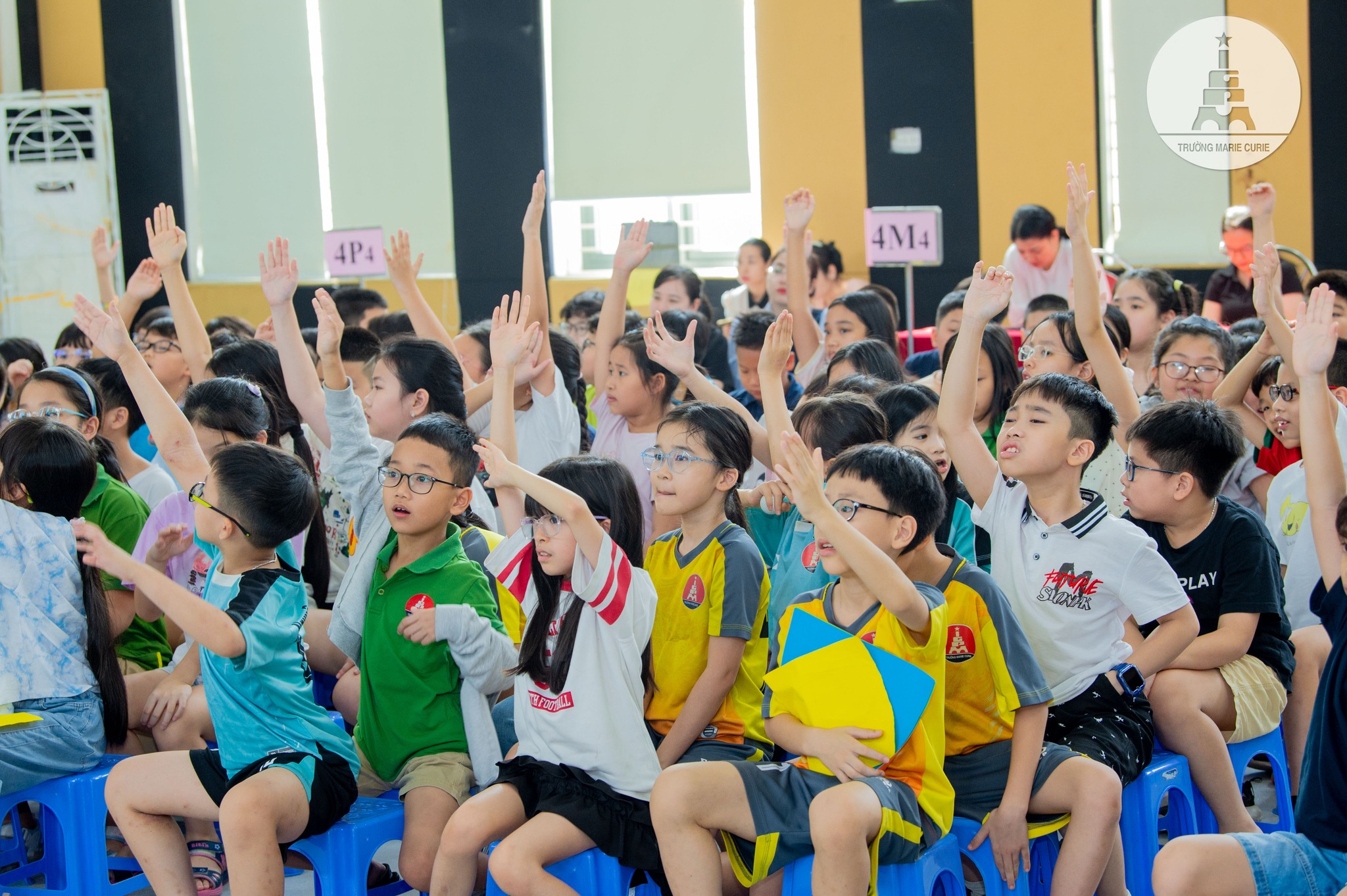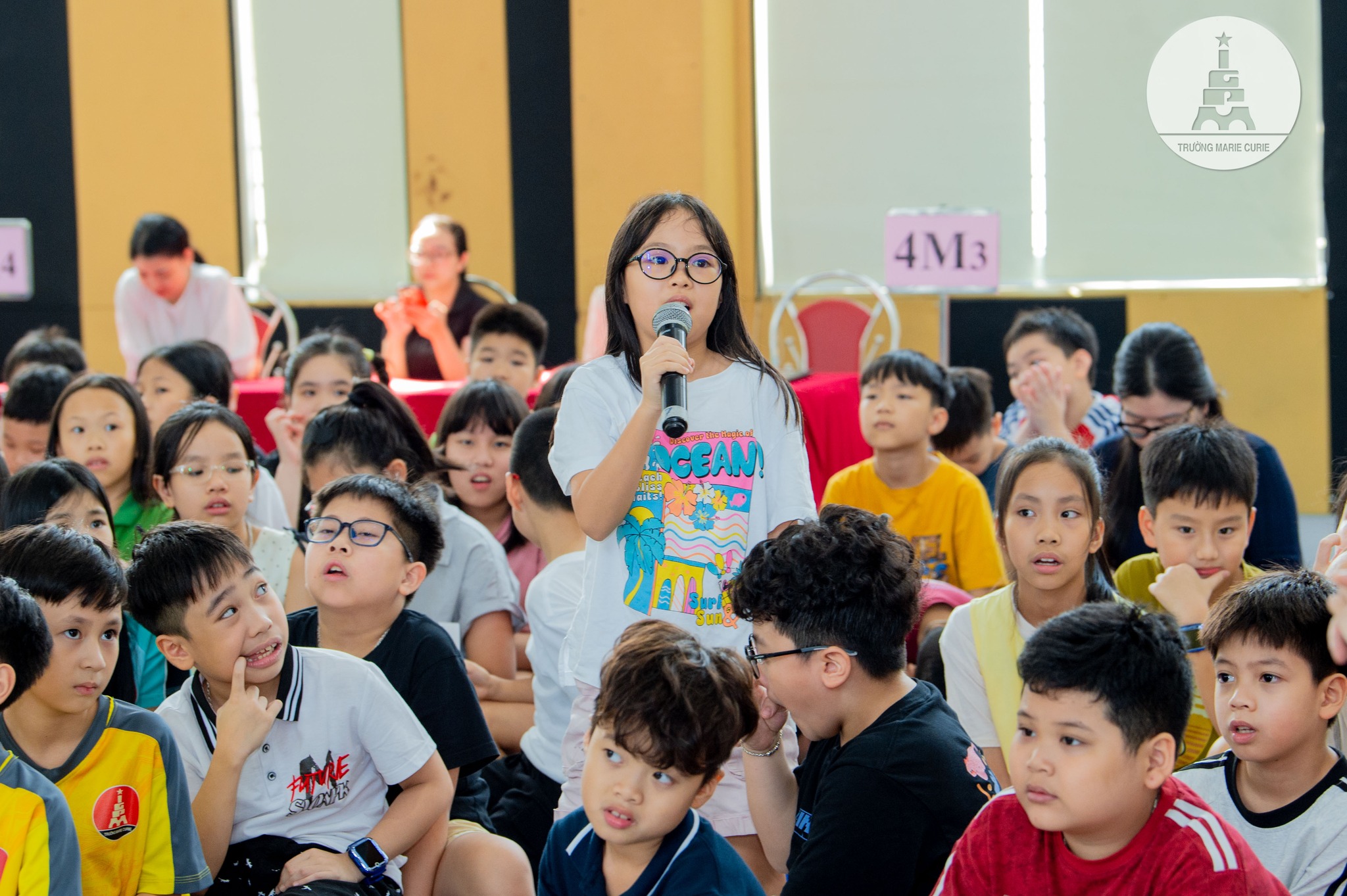 Không dừng lại ở đó, “workshop” còn trở nên sôi động hơn với phần thi giải đố nhanh và thử thách phân loại rác. Mỗi lớp cử ra 2 đại diện tranh tài, qua đó vừa rèn kỹ năng nhận diện rác thải vừa học cách bảo vệ môi trường một cách thiết thực.