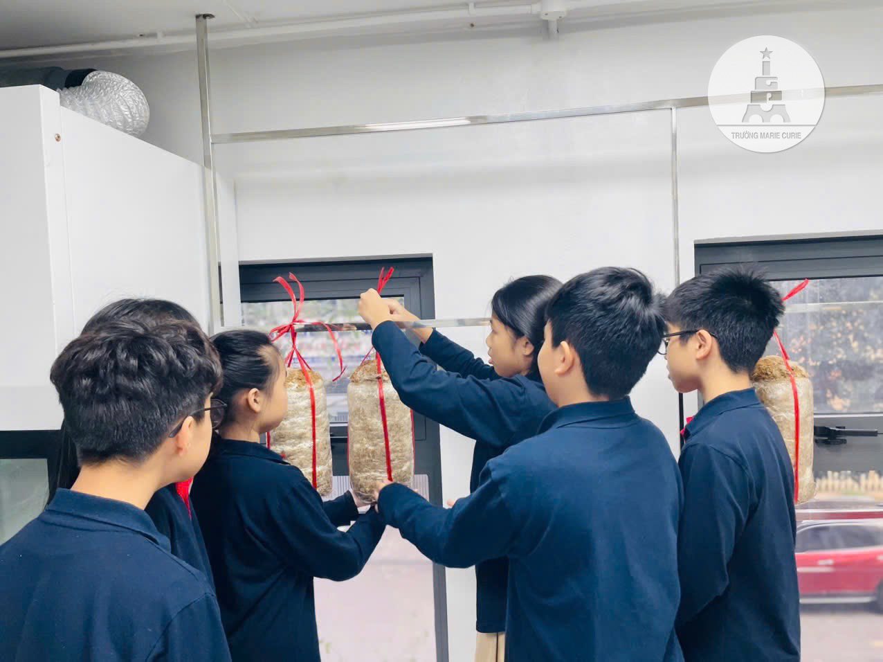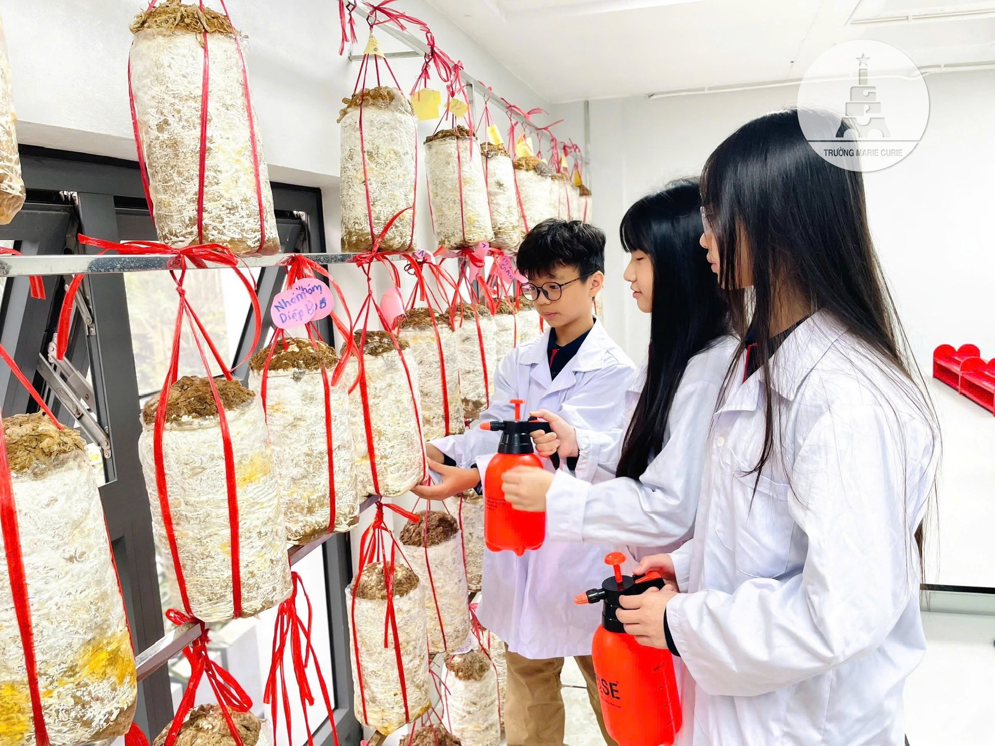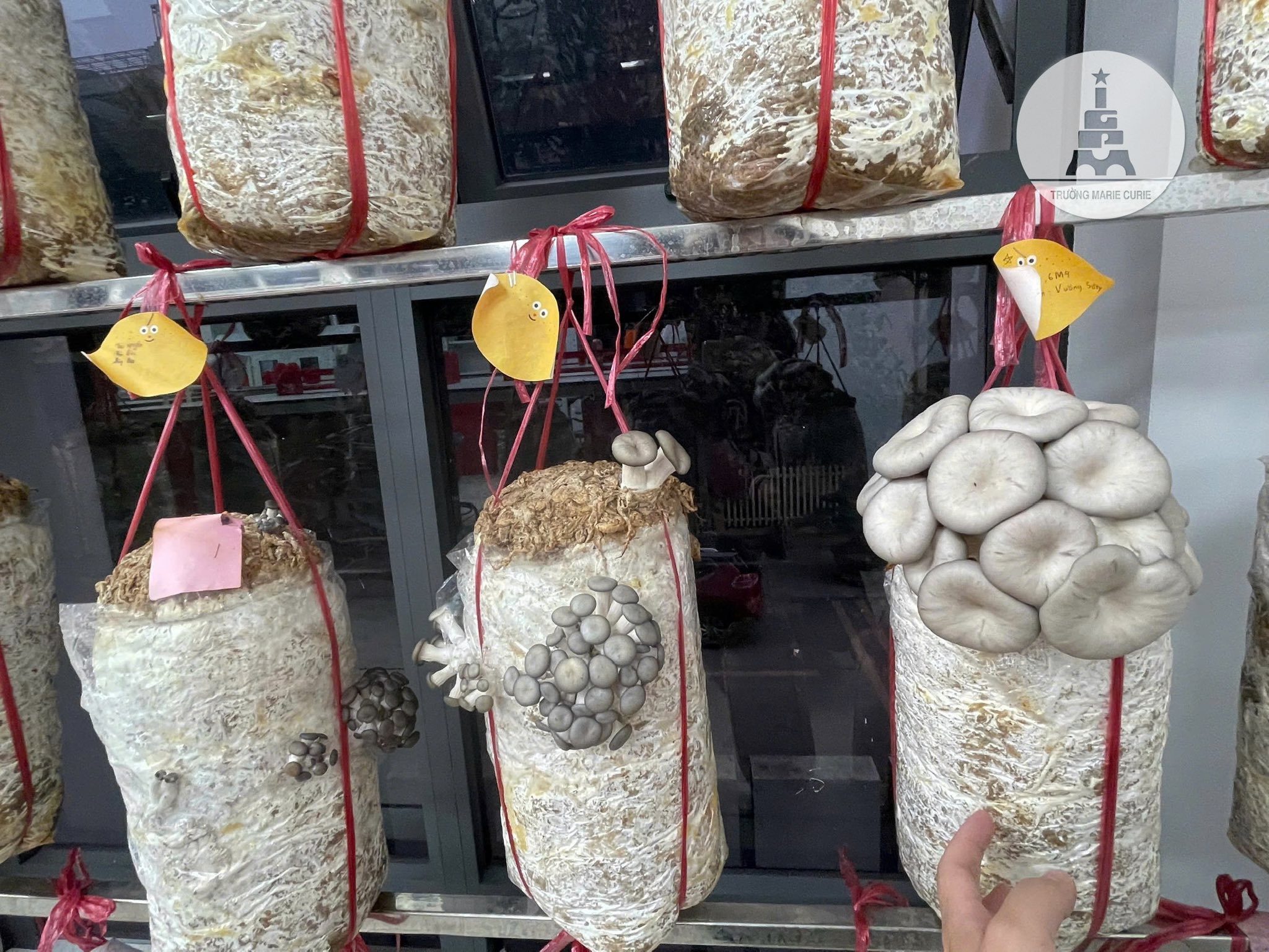 Ngay khi những phôi nấm được vận chuyển về trường, các MCer không giấu nổi sự tò mò, háo hức và cẩn thận treo từng bịch nấm lên giá. Qua từng ngày chăm sóc, những mầm nấm bắt đầu nhú lên, phát triển rõ rệt; khiến các bạn vô cùng thích thú.