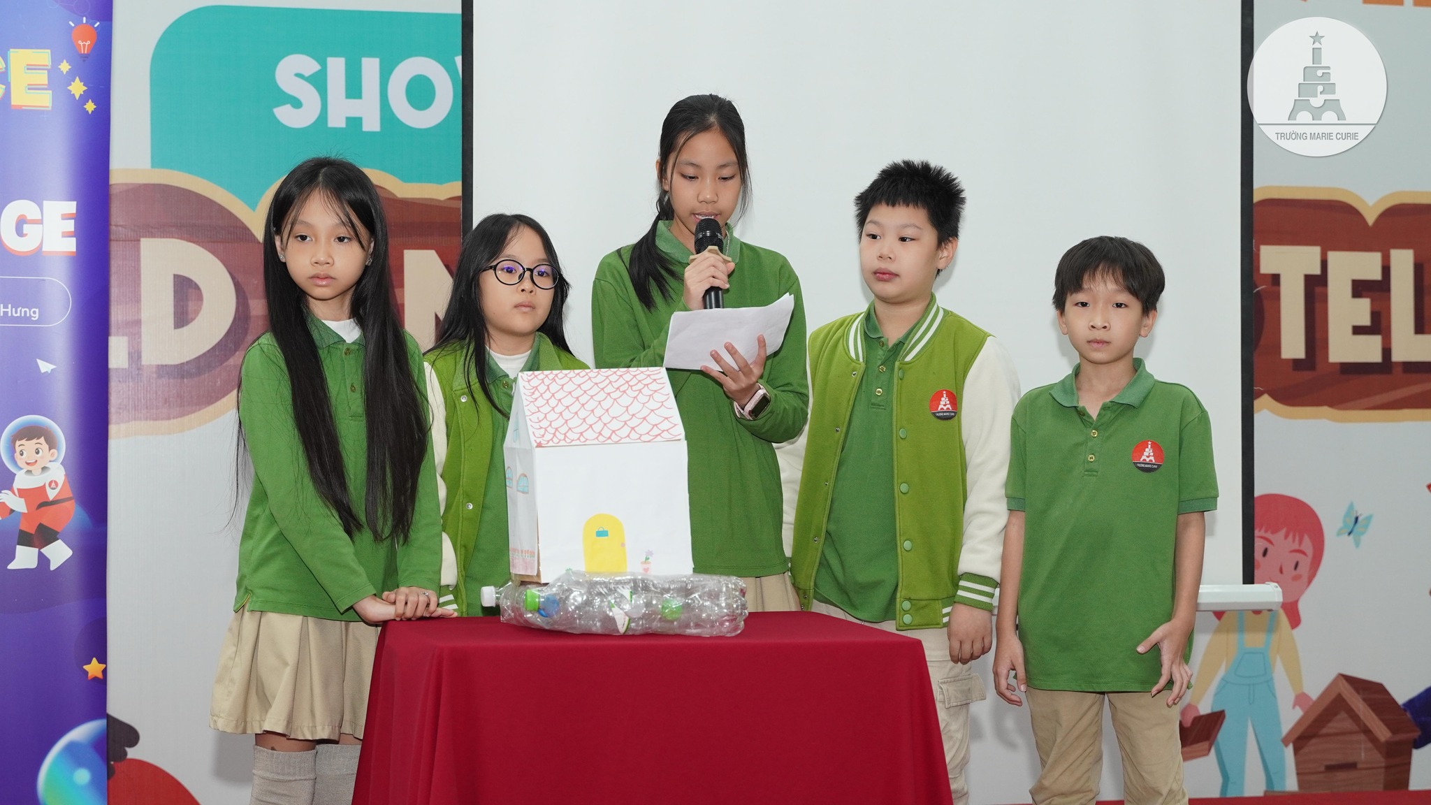 Điểm nhấn đặc biệt của vòng cuối cùng là thuyết trình sản phẩm “Ngôi nhà chống lũ”. Từ những kiến thức Khoa học, Toán học được tiếp cận trên lớp, các bạn đã cùng nhau nghiên cứu, tính toán tỷ lệ, thiết kế mô hình và trình bày ý tưởng bảo vệ cộng đồng ở vùng thiên tai. Không chỉ thể hiện sự hiểu biết chuyên môn, các đội còn cho thấy trách nhiệm đối với xã hội và tinh thần sáng tạo.