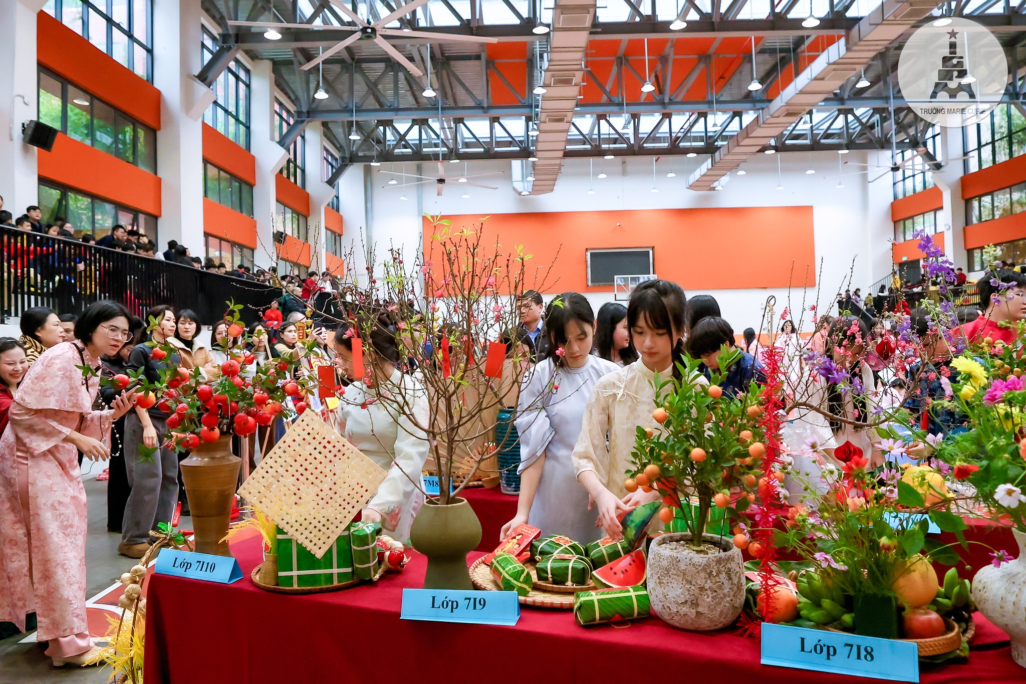 Nếu tập thể 11A3, 12M6 trang trí mẹt bánh chưng bằng mâm cỗ ấn tượng với đầy đủ món ngon thì lớp 9I5, 9M6… làm nổi bật phần trang trí với dưa hấu khắc hoa, gánh hàng hoa, bức tranh hình con ngựa cỡ lớn... Trong khi đó, các “cư dân” 7P5 sưu tầm các câu thơ, ca dao về bánh chưng và gửi gắm thông điệp về tinh thần “uống nước nhớ nguồn”, sự đùm bọc, sum vầy gia đình và ước mong một năm mới ấm no, thịnh vượng.