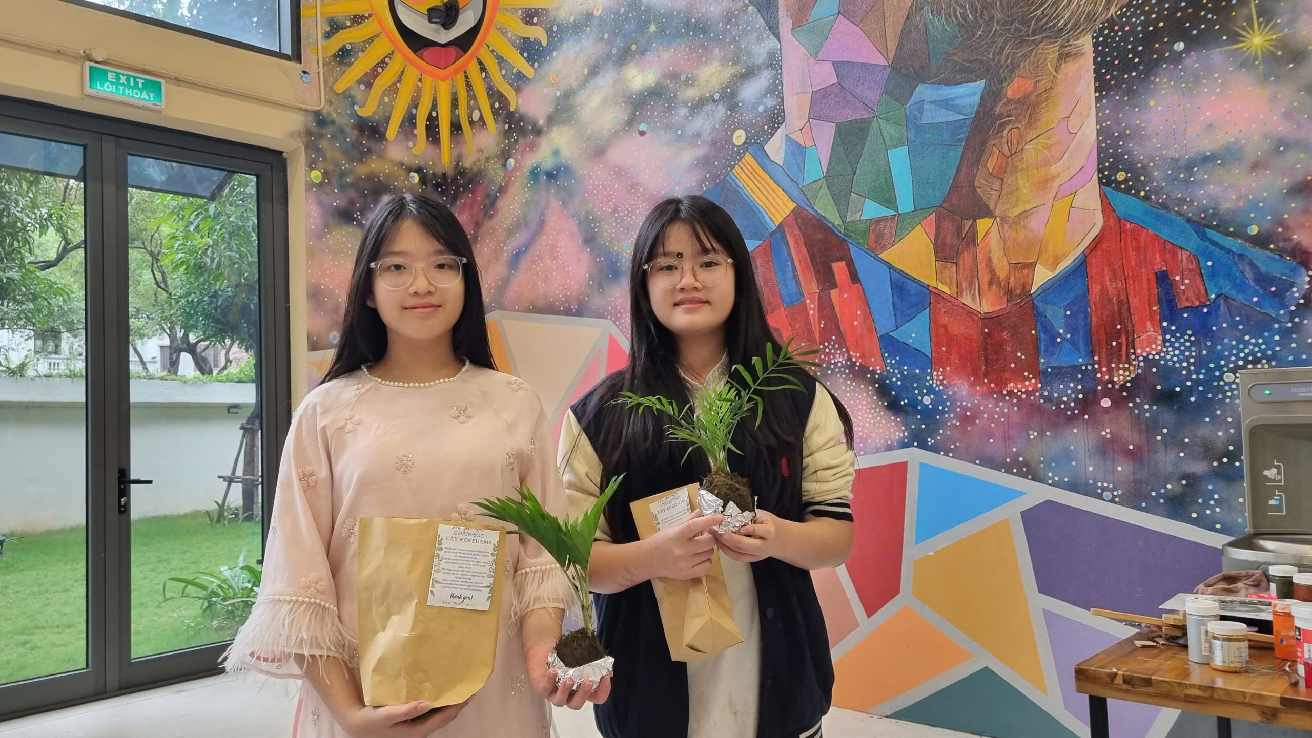 Kokedama là nghệ thuật trồng cây trong quả bóng rêu, không cần sử dụng chậu. Theo cô chủ nhiệm Huyền Trang, hoạt động này tạo cơ hội cho các lớp trong khối gặp gỡ, giao lưu và cùng nhau làm một sản phẩm xanh, thân thiện với môi trường.