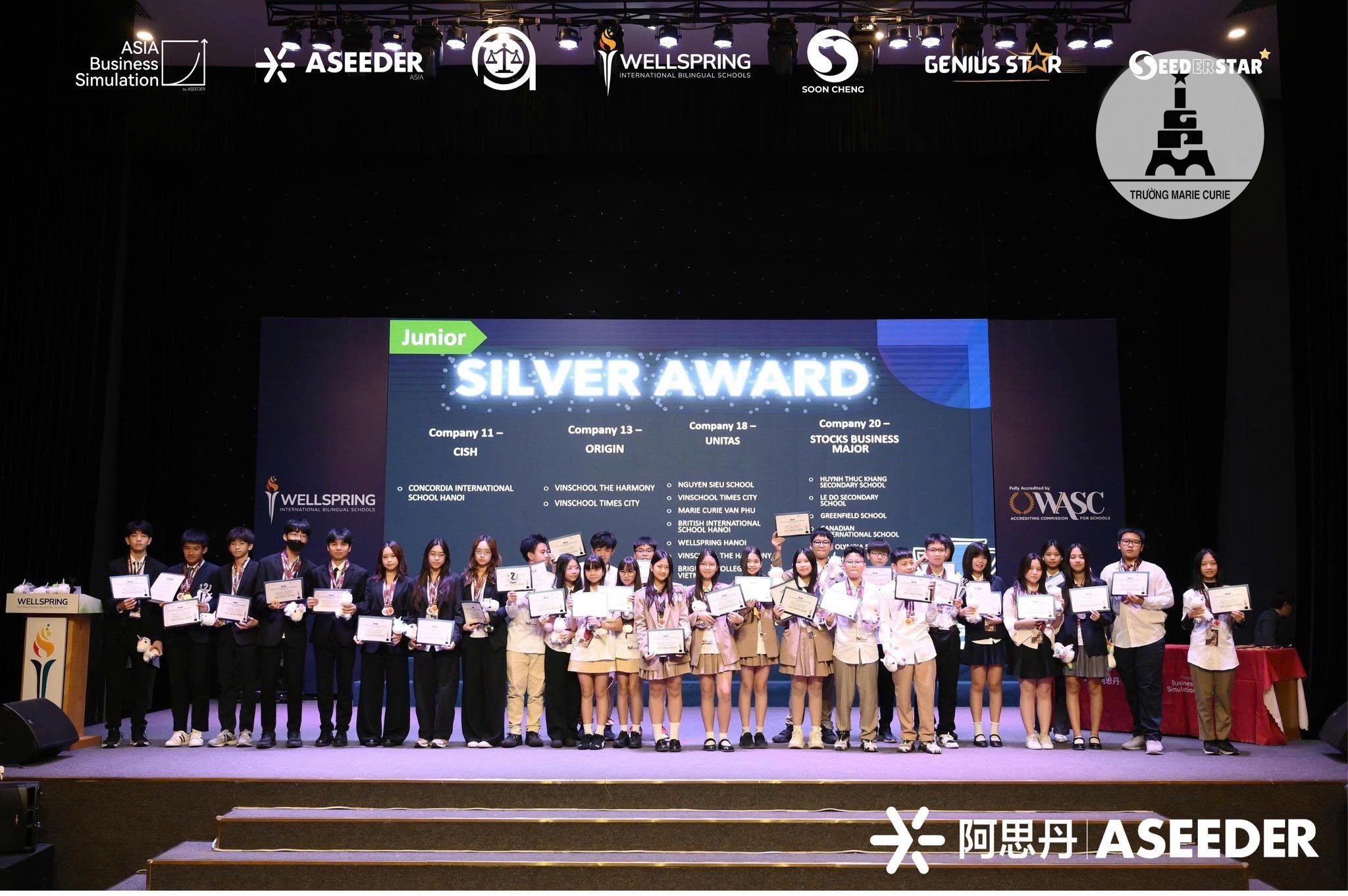 Nguyễn Minh Quân (8M6) cùng các đồng đội đã giành giải Bạc bảng Junior (lớp 6 - 9) tại cuộc thi “Giả lập doanh nghiệp châu Á” (ABS) khu vực Hà Nội, giành vé dự thi tại Trung Quốc vào tháng 2/2026. Đồng thời, cậu là một trong 6 ứng viên xuất sắc đoạt giải cá nhân “Super Seeds”.