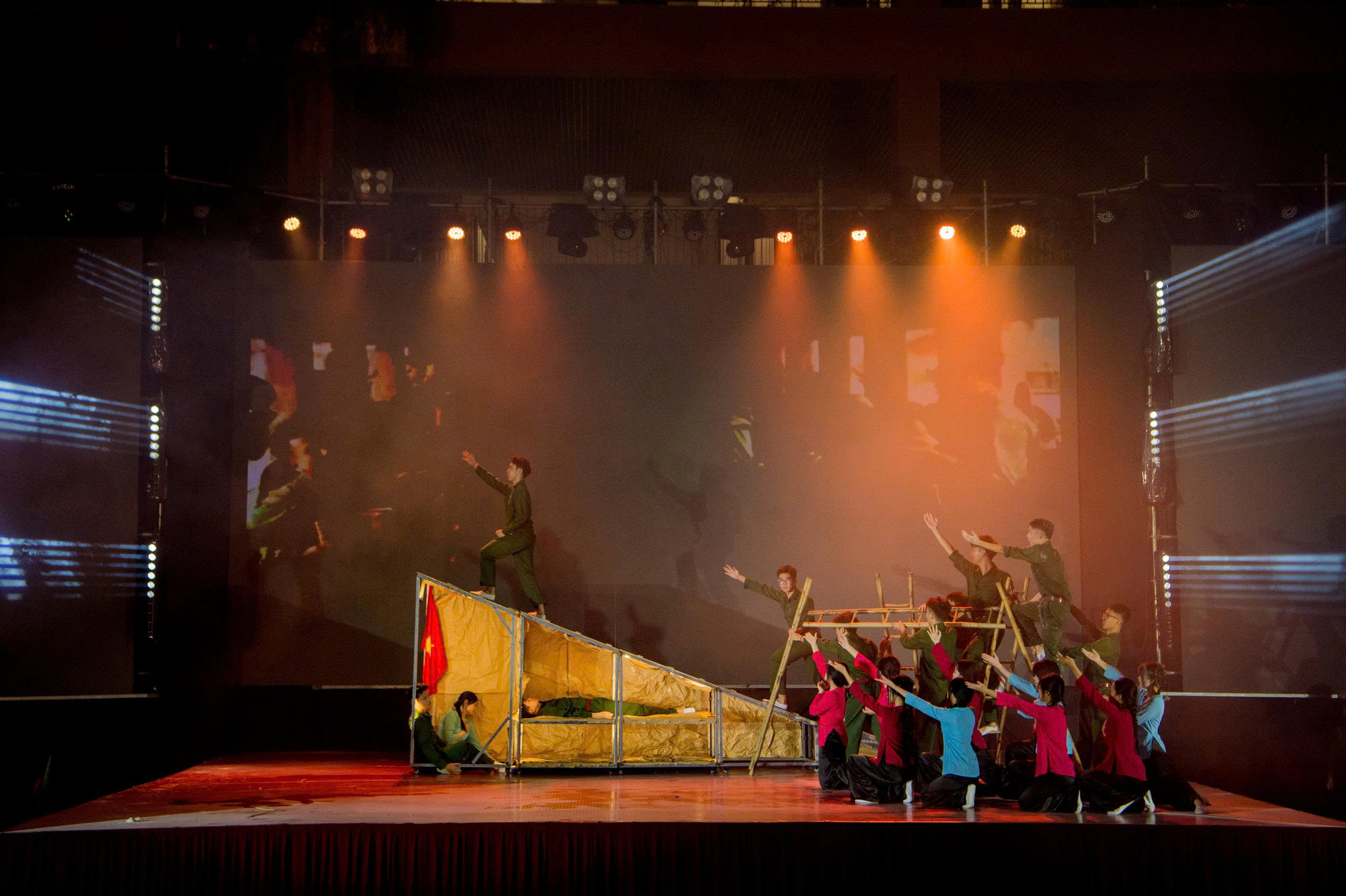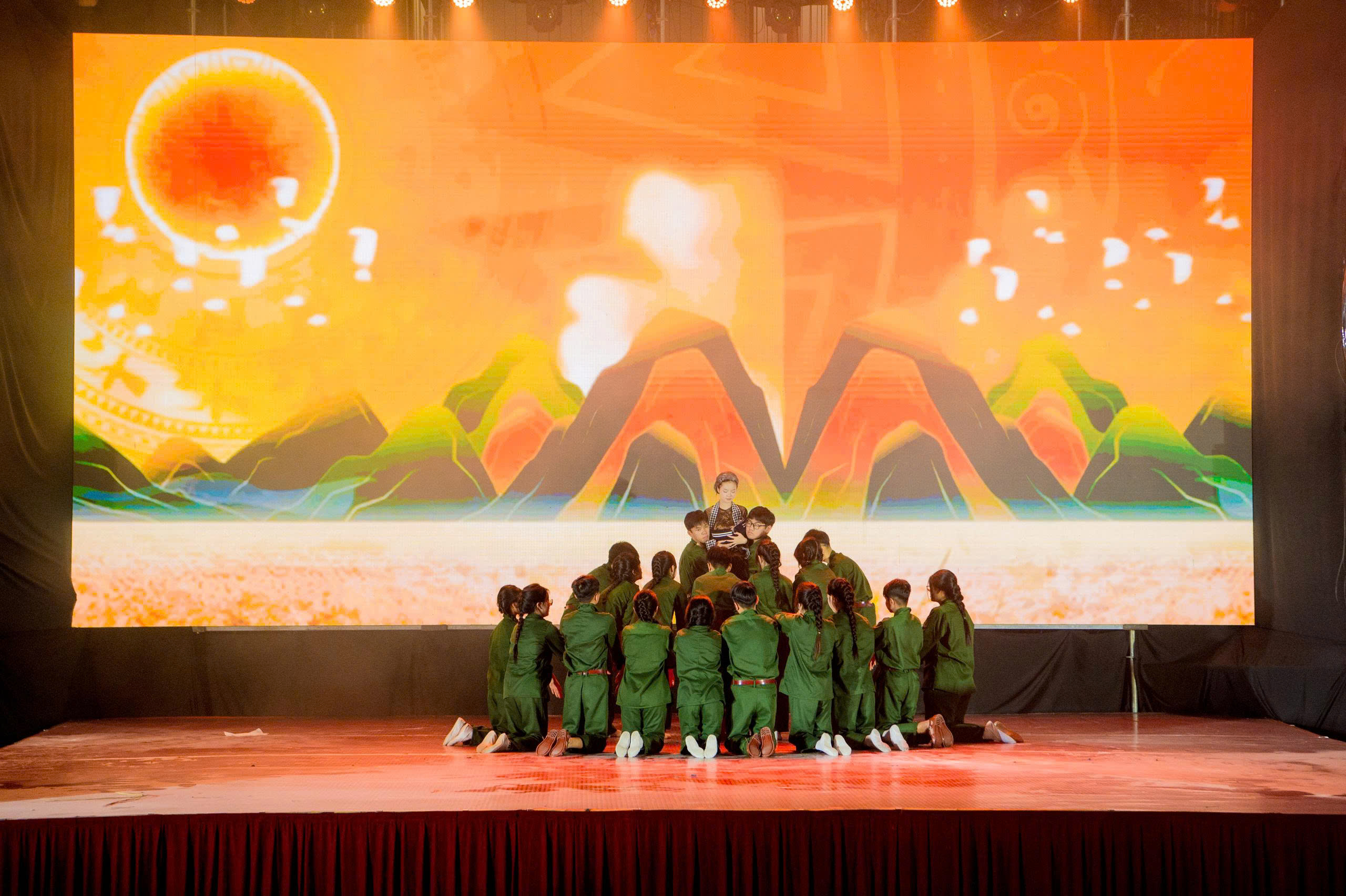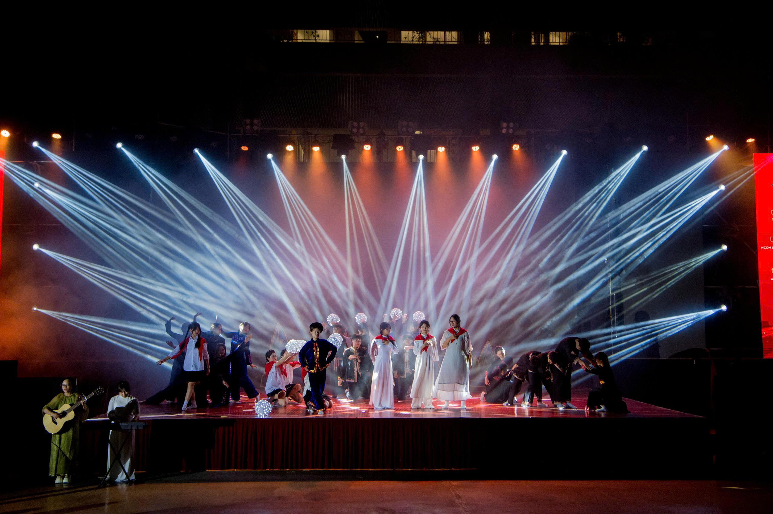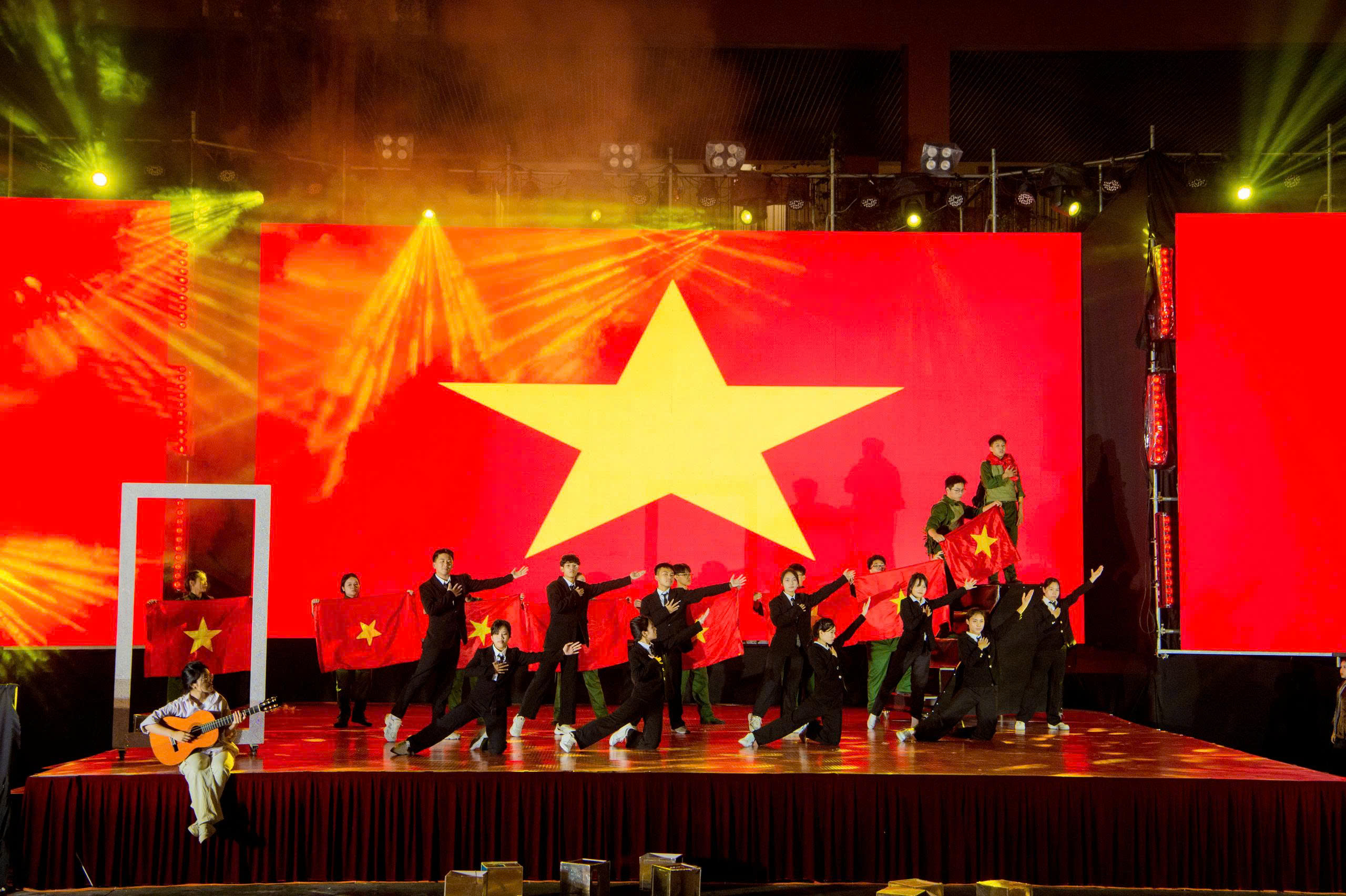 Dưới ánh đèn, màn led khủng và sân khấu vô cùng hoành tráng; cũng như sự cổ vũ, động viên của đông đảo phụ huynh, các MCer đã mang tới sự bùng nổ, bất ngờ. 25 tiết mục xuất sắc đã dẫn dắt khán giả đi theo mạch cảm xúc. Đó là ngược dòng thời gian để cảm nhận tinh thần bất khuất, kiên cường với “Bức thư thời chiến”, “Dấu ấn Trường Sơn”, “Màu cờ trong mưa”, “Đường độc lập”… trong những cuộc chiến đầy cam go một thời bom đạn, khói lửa để bảo vệ nền độc lập, tự do. Đó là lòng tự hào dân tộc, biết ơn thế hệ cha ông đã ngã xuống để đổi lấy hòa bình với “Hồn đất Việt”, “Màu cờ Tổ quốc”, “Tiến lên Việt Nam”… Và cuối cùng là sự tiếp nối của thế hệ trẻ trong tiết mục “Việt Nam thịnh vượng”, “Thanh niên vững bước tiến vào kỷ nguyên mới”, “Gen Việt - sức mạnh kết nối”…